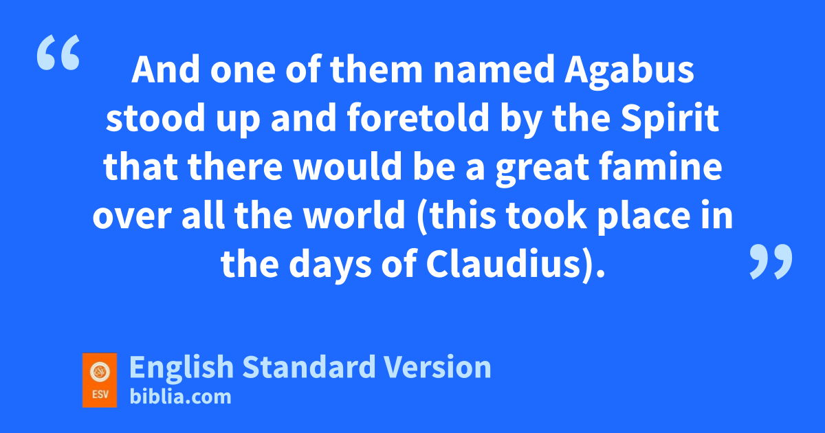 27 Now in these days wprophets came down from Jerusalem to Antioch. 28 And one of them named xAgabus stood up and foretold yby the Spirit that there would be a great zfamine over all the world (this took place in the days of aClaudius). 29 So the disciples determined, every one according to his ability, bto send relief to cthe brothers4 living in Judea. 30 dAnd they did so, sending it to ethe elders by the hand of Barnabas and Saul.