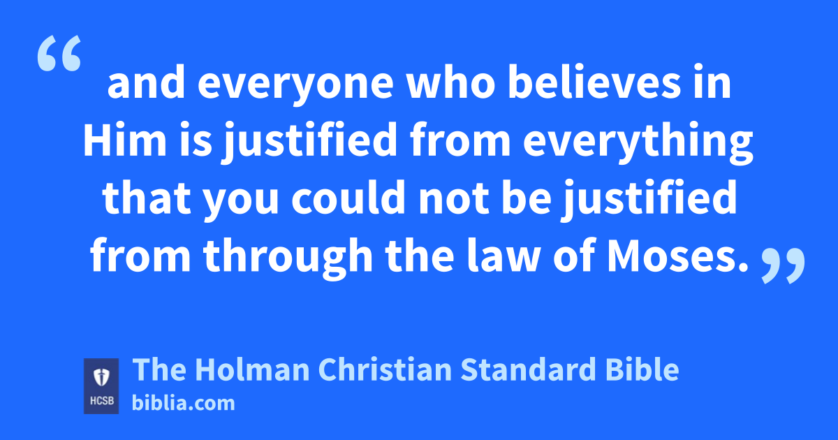 34 Since He raised Him from the dead, never to return to decay, He has spoken in this way, I will grant you the faithful covenant blessings u made to David. v w 35 Therefore He also says in another passage, You will not allow Your Holy One to see decay. x y 36 For David, after serving his own generation in God’s plan, fell * asleep, z was buried with his fathers, and decayed. a 37 But the One God raised up did not decay. 38 Therefore, let it be known to you, brothers, that through this man forgiveness of sins is being proclaimed to you, b 39 and everyone who believes in Him is * justified from everything that you could not be justified from through the law of Moses. c 40 So beware that what is said in the prophets does not happen to you: