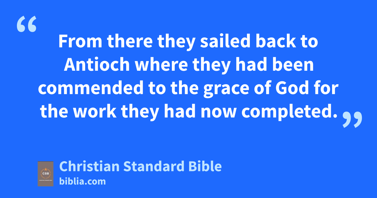 24 They passed through Pisidia and came to Pamphylia. 25 After they had spoken the word in Perga, they went down to Attalia. 26 From there they sailed back to Antioch where they had been commended to the grace of God for the work they had now completed.z 27 After they arrived and gathered the church together, they reported everything God had done with themaa and that he had opened the doorab of faith to the Gentiles. 28 And they spent a considerable time with the disciples.