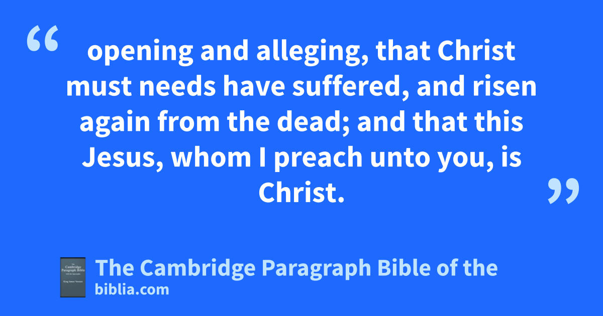 XVII. Now when they had passed through Amphipolis and Apollonia, they came to aThessalonica, where was a synagogue of the Jews: 2 and Paul, bas his manner was, went in unto them, and three sabbath days reasoned with them cout of the scriptures, 3 dopening and alleging, that eChrist must needs have suffered, and risen again from the dead; and that this fJesus, * whom I preach unto you, is Christ. 4 gAnd some of them believed, and consorted with Paul and hSilas; and of the idevout kGreeks a great multitude, and of lthe chief women not a few. 5 But mthe Jews which believed not, nmoved with envy, took unto them certain olewd fellows of the baser sort, and gathered a company, and set all the city on an uproar, and assaulted the house of pJason, and sought to bring them out to the people. 6 And when they found them not, they drew Jason and certain qbrethren unto the rulers of the city, crying, rThese that have sturned tthe world upside down are come hither also; 7 whom Jason hath ureceived: and these all do contrary to the vdecrees of Cesar, wsaying that there is another king, one Jesus. 8 And they troubled the people and the rulers of the city, when they heard these things. 9 And when they had taken security of Jason, and of the other, they let them go.