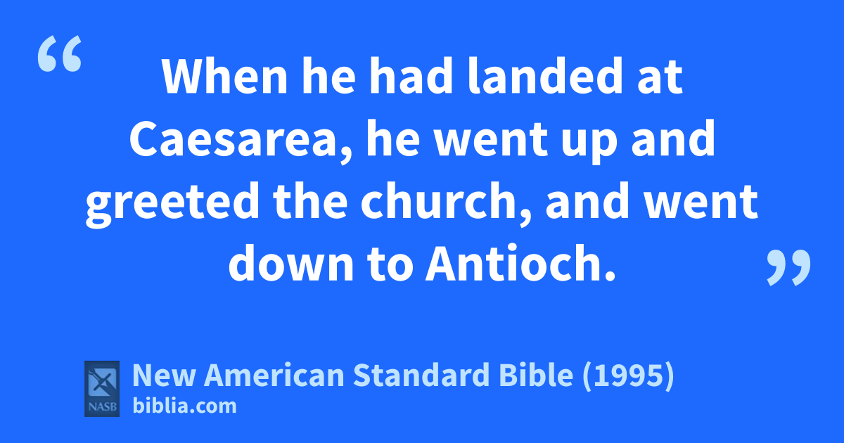 22 When he had landed at aCaesarea, he went up and greeted the church, and went down to bAntioch.