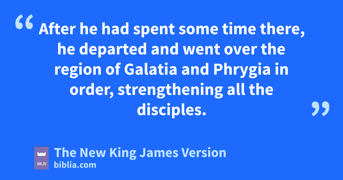 22 And when he had landed at tCaesarea, and 7gone up and greeted the church, he went down to Antioch. 23 After he had spent some time there, he departed and went over the region of uGalatia and Phrygia 8in order, vstrengthening all the disciples.