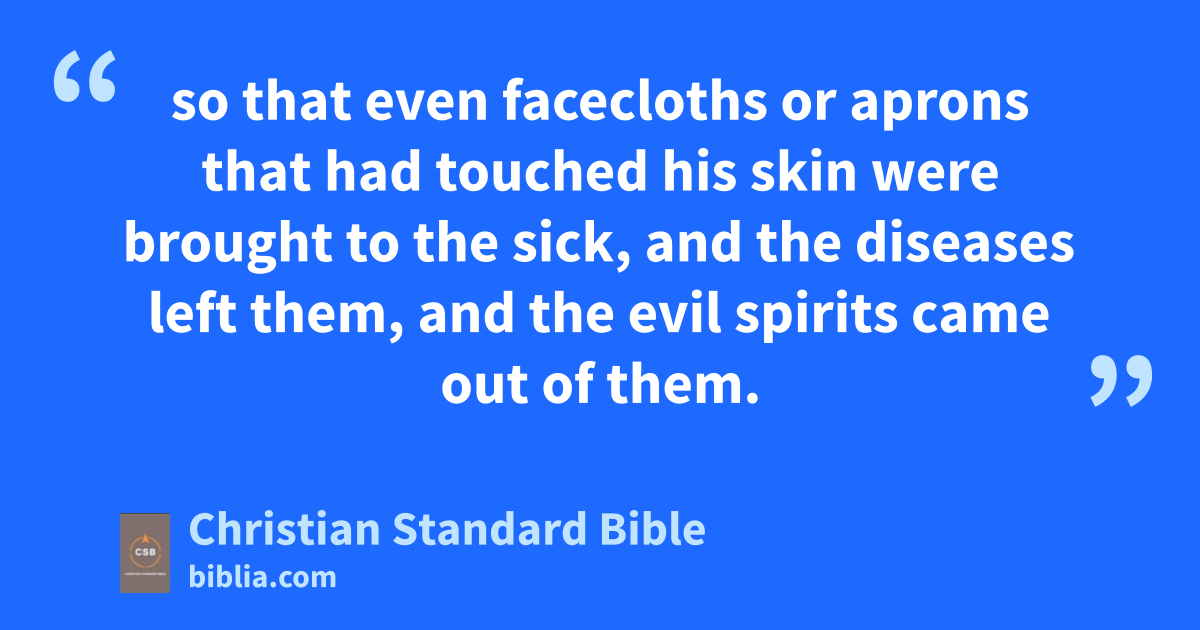 11 God was performing extraordinary miracles by Paul’s hands, 12 so that even facecloths or apronsD that had touched his skin were brought to the sick, and the diseases left them, and the evil spirits came out of them.z