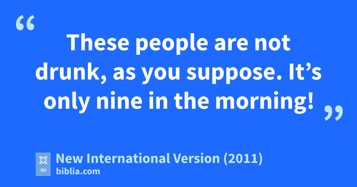 14 Then Peter stood up with the Eleven, raised his voice and addressed the crowd: “Fellow Jews and all of you who live in Jerusalem, let me explain this to you; listen carefully to what I say. 15 These people are not drunk, as you suppose. It’s only nine in the morning!i 16 No, this is what was spoken by the prophet Joel: