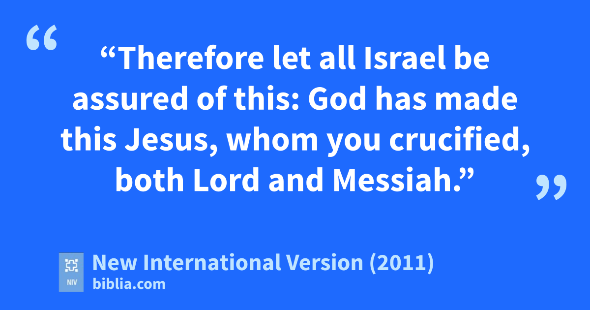 36 “Therefore let all Israel be assured of this: God has made this Jesus, whom you crucified, both Lordn and Messiah.”o