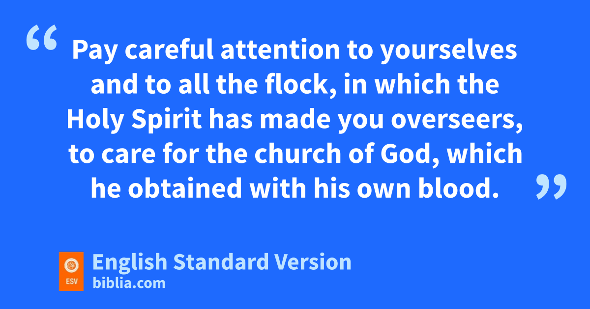 j“You yourselves know khow I lived among you the whole time jfrom the first day that I set foot in Asia, 19 lserving the Lord mwith all humility and with ntears and with trials that happened to me through othe plots of the Jews; 20 how I pdid not shrink from declaring to you anything that was profitable, and qteaching you in public and from house to house, 21 rtestifying both to Jews and to Greeks of srepentance toward God and of tfaith in our Lord Jesus Christ.3 22 And now, behold, I am going to Jerusalem, constrained uby4 the Spirit, not knowing what will happen to me there, 23 except that vthe Holy Spirit testifies to me in every city that wimprisonment and xafflictions await me. 24 But yI do not account my life of any value nor as precious to myself, if only zI may finish my course and athe ministry bthat I received from the Lord Jesus, cto testify to dthe gospel of ethe grace of God. 25 And now, behold, fI know that none of you among whom I have gone about gproclaiming the kingdom will see my face again. 26 Therefore hI testify to you this day that iI am innocent of the blood of all, 27 for jI did not shrink from declaring to you kthe whole counsel of God. 28 lPay careful attention to yourselves and to all mthe flock, in which nthe Holy Spirit has made you ooverseers, pto care for qthe church of God,5 which he robtained swith his own blood.6 29 I rknow that after my departure tfierce wolves will come in among you, unot sparing the flock; 30 and vfrom among your own selves will arise men speaking twisted things, to draw away the disciples after them. 31 Therefore wbe alert, remembering that xfor three years I did not cease night or day yto admonish every one zwith tears. 32 And now aI commend you to God and to bthe word of his grace, which is able to cbuild you up and to give you dthe inheritance among all those who are sanctified. 33 eI coveted no one’s silver or gold or apparel. 34 fYou yourselves know that gthese hands ministered to my necessities and hto those who were with me. 35 In all things iI have shown you that jby working hard in this way we must khelp the weak and lremember the words of the Lord Jesus, how he himself said, ‘It is more blessed mto give than to receive.’ ”