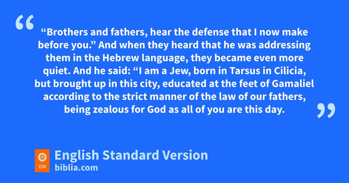 22 w“Brothers and fathers, hear the defense that I now make before you.”