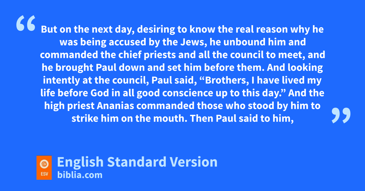 30 But on the next day, wdesiring to know the real reason why he was being accused by the Jews, he unbound him and commanded the chief priests and all the council to meet, and he brought Paul down and set him before them.