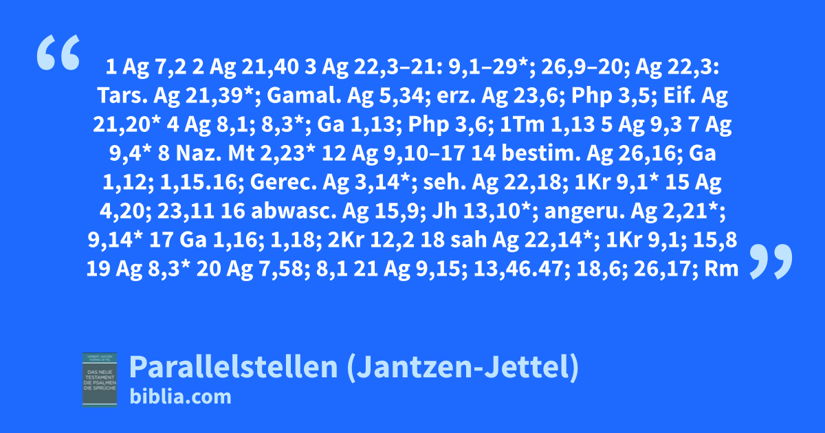 3 Ag 22,3–21: 9,1–29*; 26,9–20; Ag 22,3: Tars. Ag 21,39*; Gamal. Ag 5,34; erz. Ag 23,6; Php 3,5; Eif. Ag 21,20*