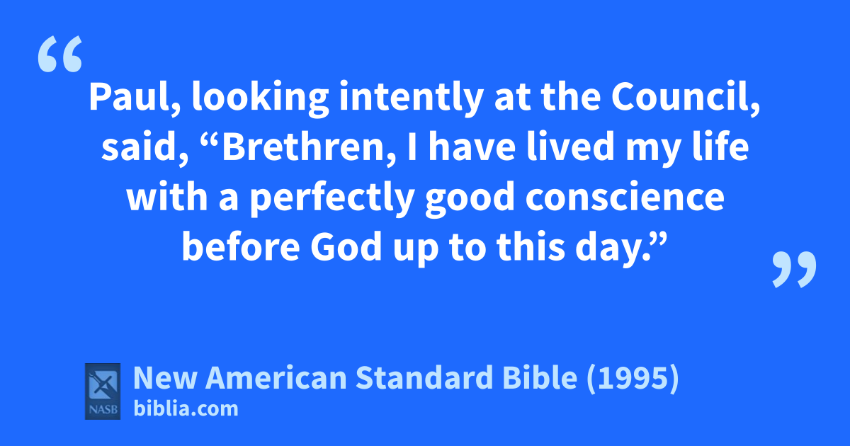 1 Paul, looking intently at athe 1Council, said, “bBrethren, cI have 2lived my life with a perfectly good conscience before God up to this day.”