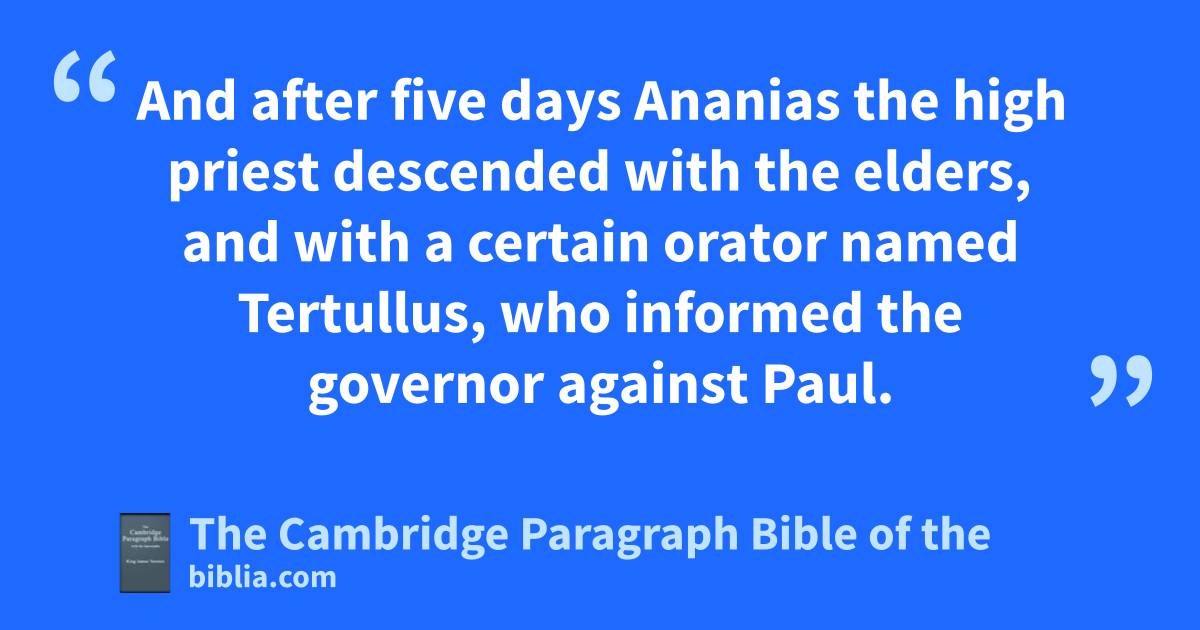 XXIV. * And after afive days bAnanias the high priest cdescended with the elders, and with a certain orator named Tertullus, who informed dthe governor against Paul. 2 And when he was called forth, Tertullus began to accuse him, saying,