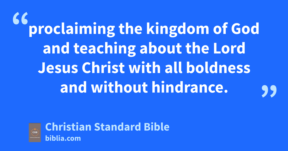 30 Paul stayed two whole years in his own rented house. And he welcomed all who visited him, 31 proclaiming the kingdom of Godi and teaching about the Lord Jesus Christ with all boldnessj and without hindrance.