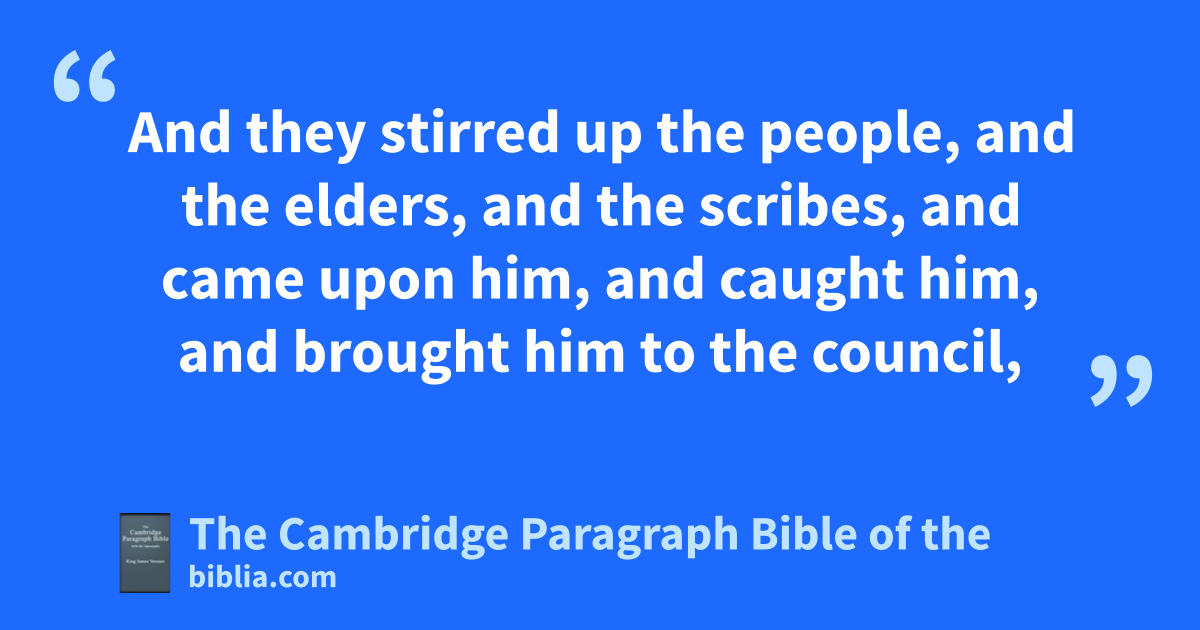 8 And Stephen, full of faith and power, did great twonders and miracles among the people. 9 Then there arose certain of the synagogue, which is called the synagogue of the Libertines, and uCyrenians, and xAlexandrians, and of them of yCilicia and of zAsia, disputing with Stephen. 10 And they were not able to aresist the wisdom and the spirit by which he spake. 11 Then bthey suborned men, which said, We have heard him speak blasphemous words against Moses, and against God. 12 And they stirred up the people, and the elders, and the scribes, and ccame upon him, and dcaught him, and brought him to ethe council, 13 and set up ffalse witnesses, which said, This man ceaseth not to speak blasphemous words against this gholy place, and the law: 14 for we have heard him say, that this Jesus of Nazareth shall hdestroy this place, and shall change the * icustoms which Moses delivered us. 15 And all that sat in ethe council, klooking stedfastly on him, saw his face as it had been lthe face of an angel.