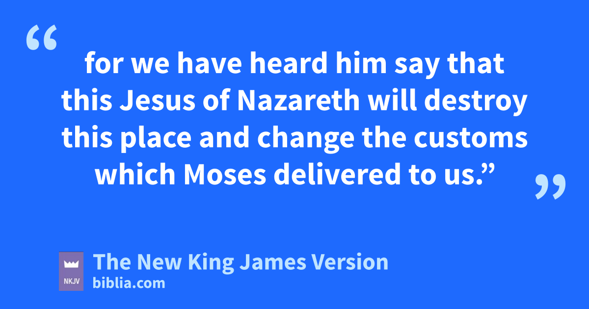 8 And Stephen, full of 2faith and power, did great owonders and signs among the people. 9 Then there arose some from what is called the Synagogue of the Freedmen (Cyrenians, Alexandrians, and those from Cilicia and Asia), disputing with Stephen. 10 And pthey were not able to resist the wisdom and the Spirit by which he spoke. 11 qThen they secretly induced men to say, “We have heard him speak blasphemous words against Moses and God.” 12 And they stirred up the people, the elders, and the scribes; and they came upon him, seized him, and brought him to the council. 13 They also set up false witnesses who said, “This man does not cease to speak 3blasphemous words against this holy place and the law; 14 rfor we have heard him say that this Jesus of Nazareth will destroy this place and change the customs which Moses delivered to us.” 15 And all who sat in the council, looking steadfastly at him, saw his face as the face of an angel.