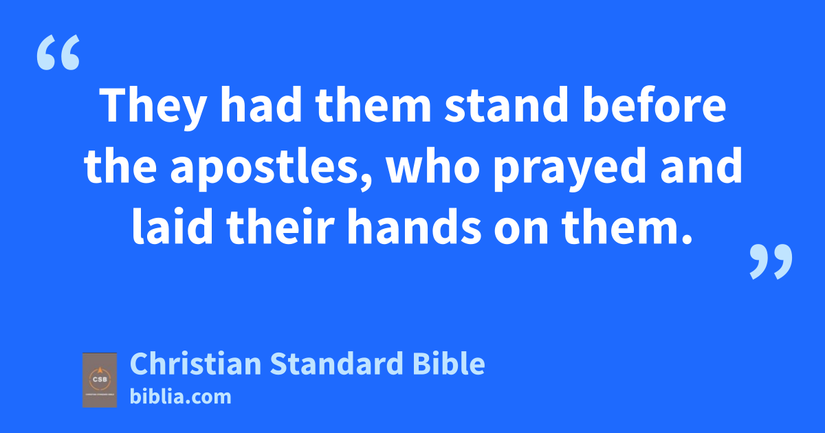 6 In those days, as the disciplesp were increasing in number, there arose a complaint by the Hellenistic Jews against the Hebraic Jews that their widows were being overlooked in the daily distribution.q 2 The Twelve summoned the whole company of the disciples and said, “It would not be right for us to give up preaching the word of God to wait on tables. 3 Brothers and sisters, select from among you seven men of good reputation,f full of the Spirits and wisdom, whom we can appoint to this duty. 4 But we will devote ourselves to prayer and to the ministry of the word.” 5 This proposal pleased the whole company. So they chose Stephen,t a man full of faith and the Holy Spirit, and Philip, Prochorus, Nicanor, Timon, Parmenas, and Nicolaus, a convert from Antioch.u 6 They had them stand before the apostles, who prayedv and laid their hands onw them.
