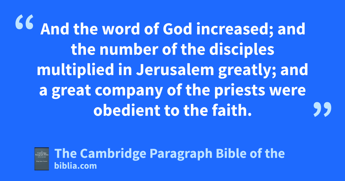 VI. And in those days, awhen the number of the disciples was multiplied, there arose a murmuring of the bGrecians against the Hebrews, because their widows were neglected cin the daily ministration. 2 Then the twelve called the multitude of the disciples unto them, and said, dIt is not reason that we should leave the word of God, and serve etables. 3 Wherefore, brethren, flook ye out among you seven men gof honest report, full of the Holy Ghost and wisdom, whom we may appoint over this business. 4 But we will hgive ourselves continually to prayer, and to ithe ministry of the word. 5 And the saying pleased the whole multitude: and they chose Stephen, ka man full of faith and of the Holy Ghost, and lPhilip, and Prochorus, and Nicanor, and Timon, and Parmenas, and mNicolas a nproselyte of oAntioch: 6 whom they set before the apostles: and when they had pprayed, they qlaid their hands on them. 7 And rthe word of God increased; and the number of the disciples multiplied in Jerusalem greatly; and sa great company of the priests were obedient to the faith.
