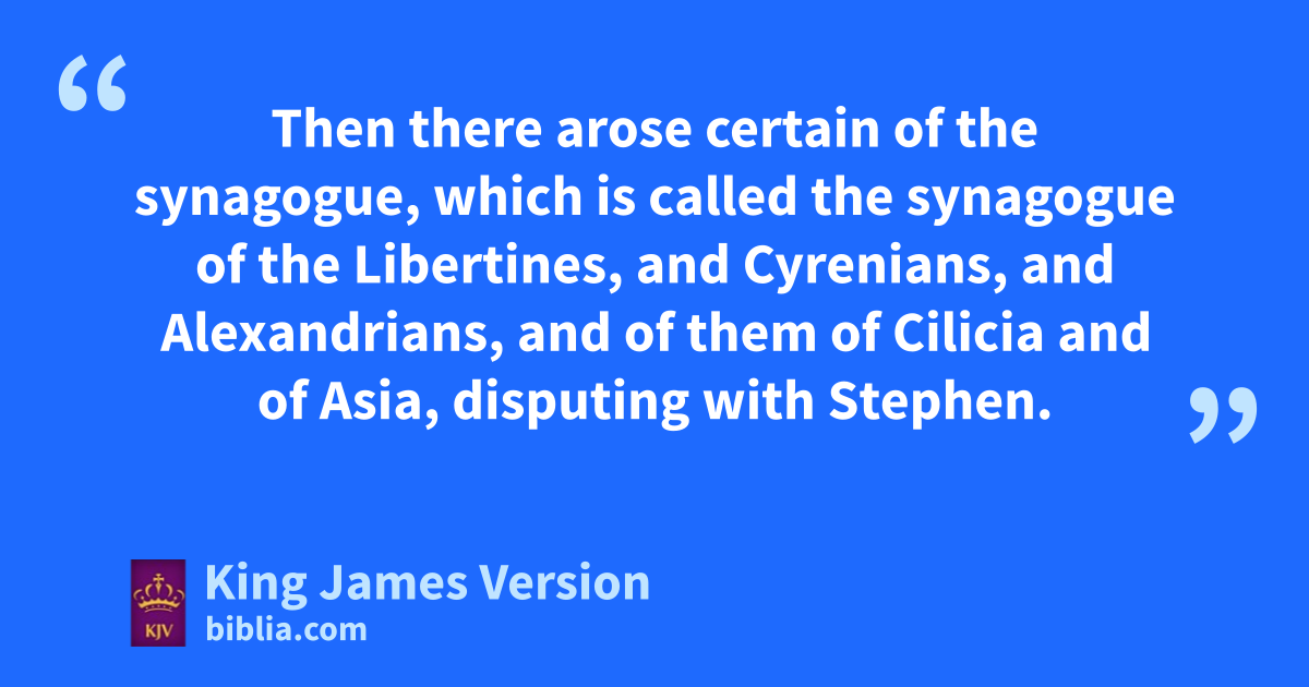8 And Stephen, full of faith and power, did great twonders and miracles among the people. 9 Then there arose certain of the synagogue, which is called the synagogue of the Libertines, and uCyrenians, and xAlexandrians, and of them of yCilicia and of zAsia, disputing with Stephen. 10 And they were not able to aresist the wisdom and the spirit by which he spake. 11 Then bthey suborned men, which said, We have heard him speak blasphemous words against Moses, and against God. 12 And they stirred up the people, and the elders, and the scribes, and ccame upon him, and dcaught him, and brought him to ethe council, 13 And set up ffalse witnesses, which said, This man ceaseth not to speak blasphemous words against this gholy place, and the law: 14 For we have heard him say, that this Jesus of Nazareth shall hdestroy this place, and shall change the ||icustoms which Moses delivered us. 15 And all that sat in ethe council, klooking stedfastly on him, saw his face as it had been lthe face of an angel.