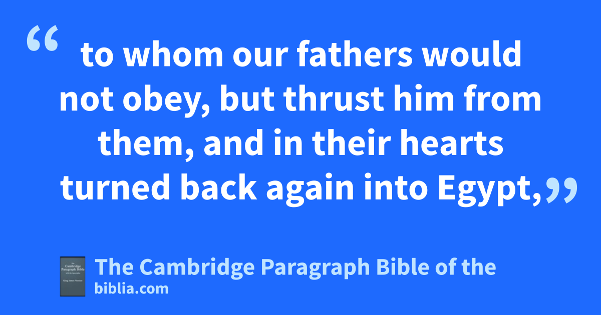 aMen, brethren, and fathers, hearken; The God of glory appeared unto our father Abraham, when he was in bMesopotamia, cbefore he dwelt in Charran, 3 and said unto him, dGet thee out of thy country, and from thy kindred, and come into the land which I shall shew thee. 4 Then ccame he out of the land of the Chaldeans, and dwelt in Charran: and from thence, ewhen his father was dead, fhe gremoved him into this land, wherein ye now dwell. 5 And he gave him none inheritance in it, no, not so much as to set his foot on: yet he promised that hhe would give it to him for a possession, and to his seed after him, iwhen as yet he had no child. 6 And God spake on this wise, That khis seed should sojourn in a strange land; and that they should bring them into bondage, and entreat them evil lfour hundred years. 7 And the nation to whom they shall be in bondage will I judge, said God: and after that shall they come forth, and mserve me in this place. 8 And nhe gave him the covenant of circumcision: and oso Abraham begat Isaac, and circumcised him the eighth day; and pIsaac begat Jacob; and qJacob begat the twelve rpatriarchs. 9 And rthe patriarchs, smoved with envy, tsold Joseph into Egypt: but uGod was with him, 10 and delivered him out of all his afflictions, and xgave him favour and wisdom in the sight of Pharaoh king of Egypt; and he made him governor over Egypt and all his house. 11 yNow there came a dearth over all the land of Egypt and Canaan, and great affliction: and our fathers found no sustenance. 12 zBut when Jacob heard that there was corn in Egypt, he sent out our fathers first. 13 And aat the second time Joseph bwas made known to his brethren; and cJoseph’s kindred was made known unto Pharaoh. 14 dThen sent Joseph, and called his father Jacob to him, and eall his kindred, fthreescore and fifteen gsouls. 15 So Jacob hwent down into Egypt, and idied, he, and jour fathers, 16 and kwere carried over into lSychem, and laid in the sepulchre that mAbraham bought for a sum of money mnof the sons of Emmor othe father of Sychem. 17 But when pthe time of the promise drew nigh, which God had sworn to Abraham, qthe people grew and multiplied in Egypt, 18 till another king arose, rwhich knew not Joseph. 19 The same sdealt subtilly with our kindred, and evil entreated our fathers, tso that they cast out their young children, to the end they might not ulive. 20 In which time xMoses was born, and was * exceeding yfair, and nourished up in his father’s house three months: 21 and zwhen he was cast out, Pharaoh’s daughter took him up, and nourished him for her own son. 22 And Moses was learned in all athe wisdom of the Egyptians, and was bmighty in words and in deeds. 23 And when he was full forty years old, cit came into his heart dto visit his brethren the children of Israel. 24 And seeing one of them suffer wrong, he defended him, and avenged him that was oppressed, and smote the Egyptian: 25 * for he supposed his brethren would have understood how that God by his hand would deliver them: but they understood not. 26 eAnd the next day he shewed himself unto them as they strove, and would have set them at one again, saying, Sirs, ye are brethren; why do ye wrong one to another? 27 But he that did his neighbour wrong thrust him away, saying, fWho made thee a ruler and a judge over us? 28 Wilt thou kill me, as thou didst the Egyptian yesterday? 29 gThen fled Moses at this saying, and was a stranger in the land of Madian, hwhere he begat two sons. 30 And when forty years were expired, ithere appeared to him in the wilderness kof mount Sina an angel of the Lord in a flame of fire in a bush. 31 When Moses saw it, he wondered at the sight: and as he drew near to lbehold it, the voice of the Lord came unto him, 32 saying, mI am the God of thy fathers, the God of Abraham, and the God of Isaac, and the God of Jacob. Then nMoses trembled, and durst not lbehold. 33 Then said the Lord to him, oPut off thy shoes from thy feet: for the place where thou standest is holy ground. 34 pI have seen, I have seen the affliction of my people which is in Egypt, and I have heard their groaning, and am come down to deliver them. And now come, I will send thee into Egypt. 35 This Moses whom they refused, saying, Who made thee a ruler and a judge? the same did God send to be a ruler and a deliverer qby the hand of the angel which appeared to him in the bush. 36 rHe brought them out, after that he had shewed swonders and signs in the land of Egypt, and tin the Red sea, and uin the wilderness wforty years. 37 This is that Moses, which said unto the children of Israel, xA prophet shall the Lord your God raise up unto you of your brethren, * like unto me; him shall ye hear. 38 This is he, ythat was in the zchurch in the wilderness with athe angel which spake to him in the mount Sina, and with our fathers: bwho received the lively coracles to give unto us: 39 to whom our fathers would not obey, but thrust him from them, and in their hearts dturned back again into Egypt, 40 saying unto Aaron, eMake us gods to go before us: for as for this Moses, which brought us out of the land of Egypt, we wot not what is become of him. 41 And fthey made a calf in those days, and foffered sacrifice unto the idol, and grejoiced in hthe works of their own hands. 42 Then God iturned, and jgave them up to worship kthe host of heaven; as it is written in the book of the prophets, lO ye house of Israel, have ye offered to me slain beasts and sacrifices by the space of forty years in the wilderness? 43 Yea, ye took up the tabernacle of mMoloch, and the star of your god Remphan, figures which ye made to worship them: and I will ncarry you away beyond Babylon. 44 Our fathers had othe tabernacle of Witness in the wilderness, as he had appointed, * speaking unto Moses, pthat he should make it according to the fashion that he had seen. 45 Which also our fathers * that came after qbrought in with rJesus into the possession of the Gentiles, swhom God drave out be