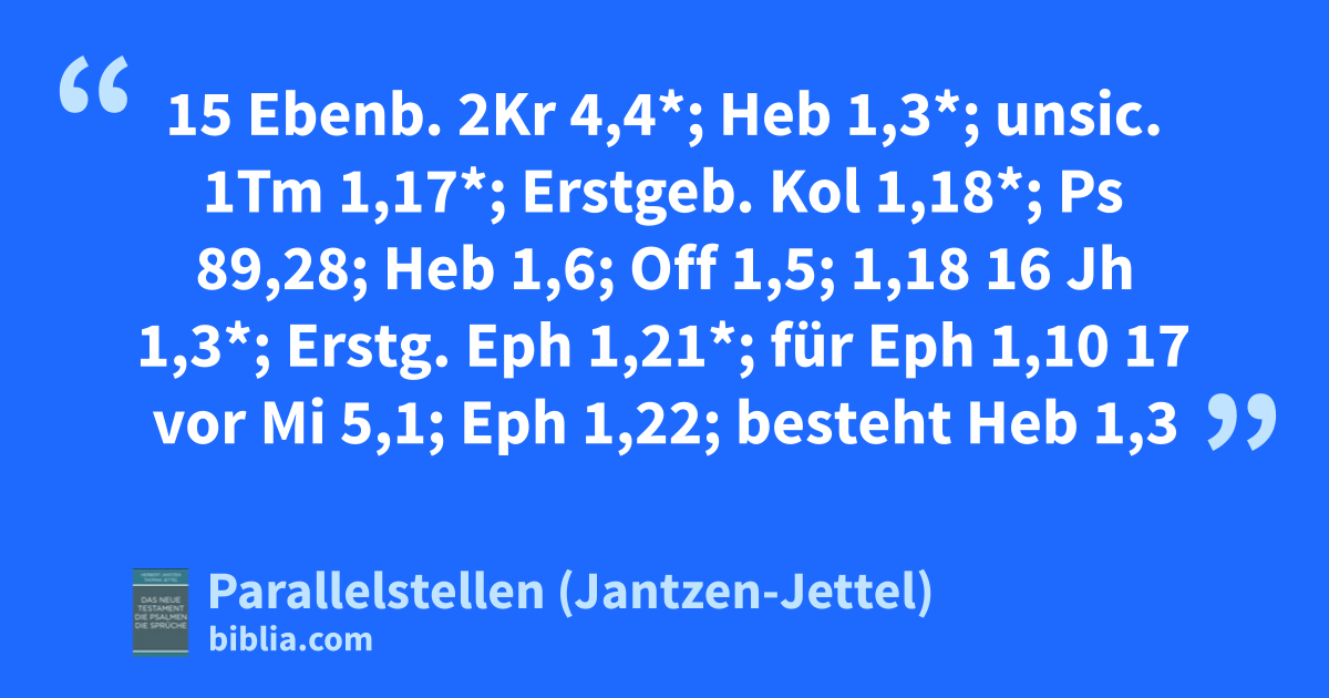 15 Ebenb. 2Kr 4,4*; Heb 1,3*; unsic. 1Tm 1,17*; Erstgeb. Kol 1,18*; Ps 89,28; Heb 1,6; Off 1,5; 1,18