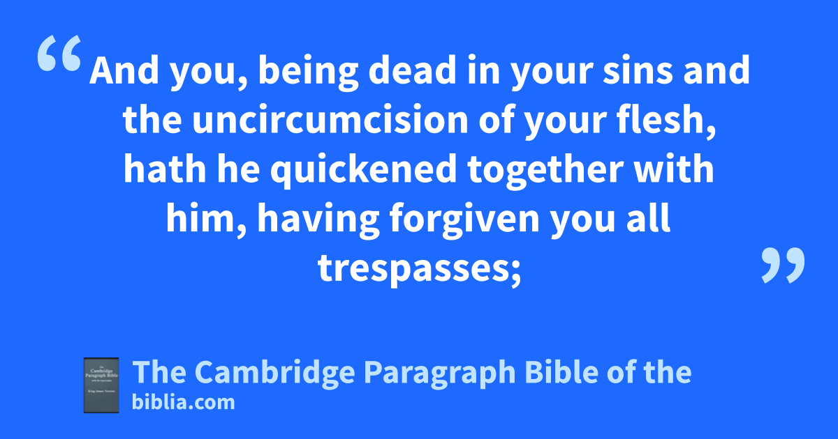 8 yBeware lest any man spoil you through philosophy and vain deceit, after zthe tradition of men, after the * rudiments of the world, and not after Christ. 9 For in him adwelleth all the bfulness of the Godhead cbodily. 10 And dye are complete in him, ewhich is the head of all fprincipality and fpower: 11 in whom also ye are circumcised with gthe circumcision made without hands, hin putting off the body of the sins of the flesh, by the circumcision of Christ: 12 iburied with him in baptism, wherein also jyou are risen with him through kthe faith of lthe operation of God, mwho hath raised him from the dead. 13 nAnd you, being dead in your sins and the uncircumcision of your flesh, hath he quickened together with him, having forgiven you all trespasses; 14 opblotting out the handwriting of qordinances that was against us, which was contrary to us, and rtook it out of the way, nailing it to his cross; 15 and shaving spoiled fprincipalities and fpowers, she made a shew of them openly, ttriumphing over them * uin it.