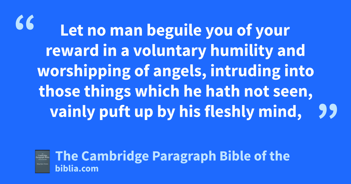 16 Let no man therefore wjudge you * xin meat, or in drink, or * in respect of ya holyday, or of zthe new moon, or of athe sabbath days: 17 which are ba shadow of things to come; but cthe body is of Christ. 18 dLet no man * beguile you of your reward * in a voluntary humility and worshipping of angels, eintruding into those things which he hath not seen, vainly fpuft up by his fleshly mind, 19 and not gholding hthe head, hfrom which all the body by joints and ibands iihaving nourishment ministered, and hknit together, jincreaseth with jjthe increase of God. 20 Wherefore kif ye be dead with Christ from the * rudiments of the world, lwhy, as though living in the world, are ye msubject to ordinances, 21 (ntouch not; otaste not; handle not; 22 pwhich all are qto perish with the using;) after rthe commandments and rdoctrines of men? 23 swhich things have indeed a shew of wisdom in twill worship, and thumility, and * neglecting of the body, not in any honour to the satisfying of the flesh.