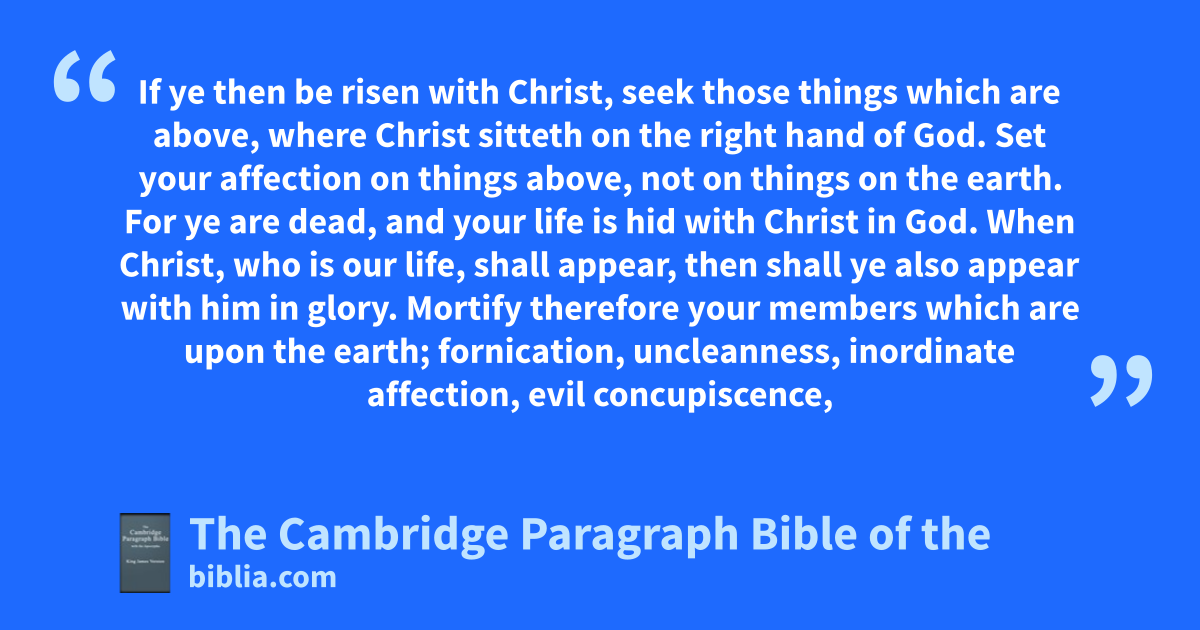 III. aIf ye then be risen with Christ, seek bthose things which are above, cwhere Christ sitteth on the right hand of God. 2 Set your * affection on bthings above, not on things on the earth. 3 For dye are dead, and your life is hid with Christ in God. 4 When Christ, who is eour life, fshall appear, then shall ye also appear with him gin glory.