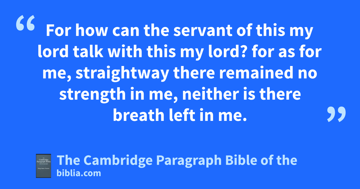 X. * aIn the third year of Cyrus bking of Persia a thing was revealed unto Daniel, cwhose name was called Belteshazzar; and dthe thing was true, but ethe time appointed fwas * long: and ghe understood the thing, and had understanding of the vision. 2 In those days I Daniel was mourning hthree * full weeks. 3 I ate no * pleasant bread, neither came flesh nor wine in my mouth, ineither did I janoint myself at all, till hthree whole weeks were fulfilled. 4 And in the four and twentieth day of kthe first month, as I was lby the side of the great river, which is mHiddekel; 5 Then nI lift up mine eyes, and looked, and behold, o* a certain man pclothed in linen, qwhose loins were girded with rfine gold of sUphaz: 6 his body also was tlike the beryl, and uhis face vas the appearance of lightning, and whis eyes as lamps of fire, and his arms and xyhis zfeet like in colour to polished brass, and yathe voice of his words like the voice of a multitude. 7 And bI Daniel alone saw the vision: for bthe men that were with me saw not the vision; but a great quaking fell upon them, so that they fled to hide themselves. 8 Therefore I was left alone, and saw this great vision, and cthere remained no strength in me: for my * dcomeliness was turned in me into corruption, and eI retained no strength. 9 Yet heard I the voice of his words: and when I heard the voice of his words, fthen was I in a deep sleep on my face, and fmy face toward the ground. 10 And behold, fga hand touched me, which * set me upon my knees and upon the palms of my hands. 11 And he said unto me, O Daniel, * a man greatly beloved, understand the words that I speak unto thee, and * hstand upright: for iunto thee am I now sent. And when he had spoken this word unto me, I stood ktrembling. 12 Then said he unto me, lFear not, Daniel: for mfrom the first day that thou didst set thine heart to understand, and nto chasten thyself before thy God, mthy words were heard, and I am come for thy words. 13 But othe prince of the kingdom of Persia withstood me pone and twenty days: but lo, qMichael, one of * the chief princes, came to help me; and I remained there with the kings of Persia. 14 Now I am come to make thee understand what shall befall thy people rin the latter days: for syet the vision is for tmany days. 15 And when he had spoken such words unto me, I set umy face toward the ground, and vI became dumb. 16 And behold, wone xlike the similitude of the sons of men gytouched my lips: then I opened my mouth, and spake, and said unto him that stood before me, O my lord, by the vision my sorrows are turned upon me, and ceI have retained no strength. 17 For how can * the servant of this my lord talk with this my lord? for as for me, straightway there remained no strength in me, neither is there breath left in me. 18 Then there came again and gtouched me wone like the appearance of a man, and he strengthened me, 19 and said, zO man greatly beloved, afear not: peace be unto thee, bbe strong, yea, be strong. And when he had spoken unto me, I was strengthened, and said, Let my lord speak; for thou hast strengthened me.