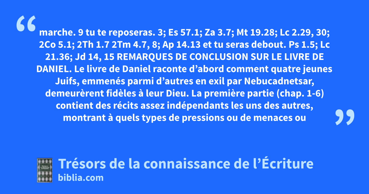 marche. 9 tu te reposeras. 3; Es 57.1; Za 3.7; Mt 19.28; Lc 2.29, 30; 2Co 5.1; 2Th 1.7 2Tm 4.7, 8; Ap 14.13 et tu seras debout. Ps 1.5; Lc 21.36; Jd 14, 15