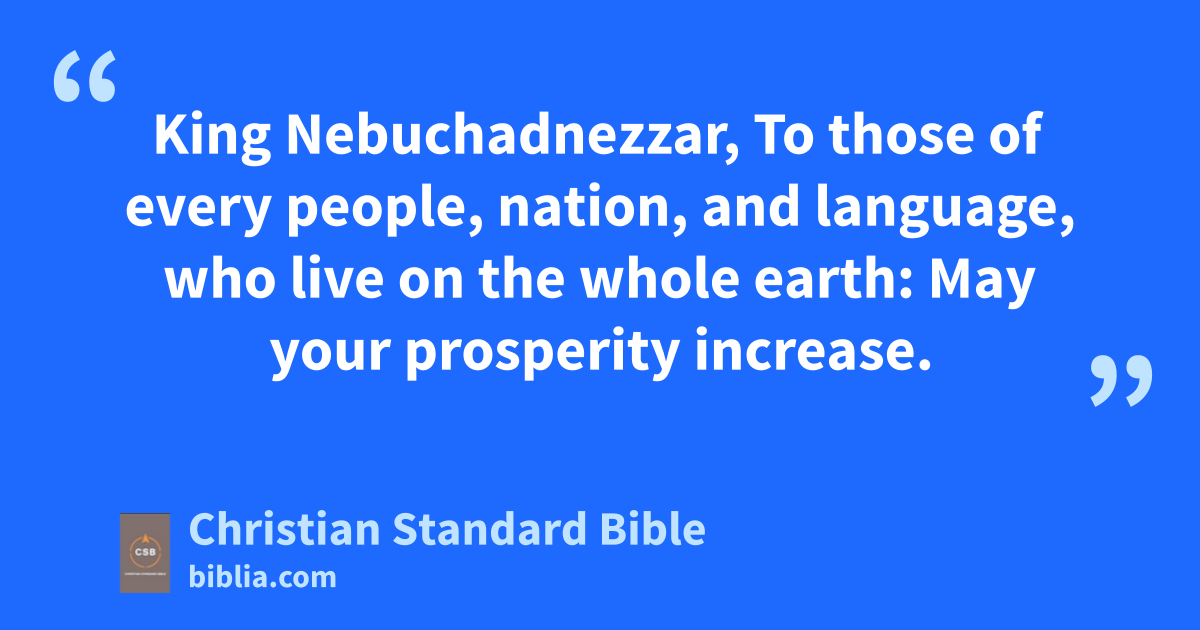 4 I, Nebuchadnezzar, was at ease in my house and flourishing in my palace.b 5 I had a dream, and it frightened me; while in my bed, the images and visions in my mind alarmed me.c 6 So I issued a decreed to bring all the wise men of Babylon to me in order that they might make the dream’s interpretation known to me.e 7 When the magicians, mediums, Chaldeans, and diviners came in, I told them the dream, but they could not make its interpretation known to me.f