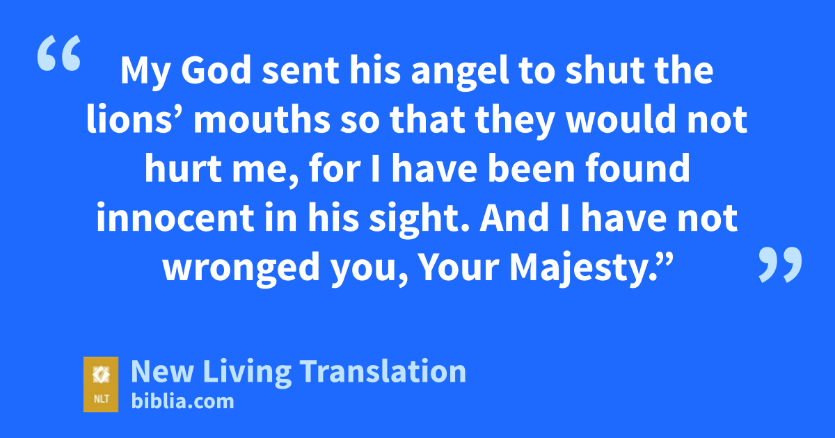 21 Daniel answered, “Long live the king! 22 My God sent his angel to shut the lions’ mouths so that they would not hurt me, for I have been found innocent in his sight. And I have not wronged you, Your Majesty.”