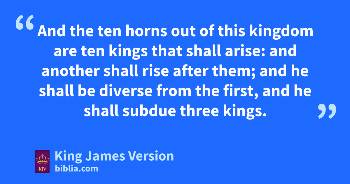 17 zThese great beasts, which are four, are four kings, which shall arise out of the earth. 18 But athe saints of the †most High bshall take the kingdom, and bpossess the kingdom for ever, even for ever and ever. 19 Then I would know the truth of cthe fourth beast, which was diverse †from all the others, cexceeding dreadful, cwhose teeth were of iron, and his nails of brass; which cdevoured, cbrake in pieces, and cstamped the residue with his feet; 20 And of cthe ten horns that were in his head, and of dthe other which came up, and dbefore whom three fell; even of dthat horn that had eyes, and da mouth that spake very great things, whose look was more stout than his fellows. 21 I beheld, and the same horn emade war with athe saints, and eprevailed against them; 22 Until fthe Ancient of days came, and gjudgment was given to hthe saints of the most High; and the time came that hithe saints possessed the kingdom. 23 Thus he said, cThe fourth beast shall be cthe fourth kingdom upon earth, cwhich shall be diverse from all kingdoms, and cshall devour the whole earth, and shall tread it down, and cbreak it in pieces. 24 And cthe ten horns out of this kingdom are ten kings that shall arise: and danother shall rise after them; and he shall be diverse from the first, and dhe shall subdue three kings. 25 And djhe shall speak kgreat words against lthe most High, and ejshall wear out hthe saints of the most High, and think mto change times and laws: and they shall be given into his hand nuntil a time and times and the dividing of time. 26 But othe judgment shall sit, and pthey shall take away his dominion, to consume and to destroy it qunto the end. 27 And hthe kingdom and dominion, and the greatness of the kingdom under the whole heaven, shall be given to the people of hthe saints of the most High, rwhose kingdom is an everlasting kingdom, and all ||dominions shall serve and obey him. 28 Hitherto is the end of the matter. sAs for me Daniel, tmy cogitations much troubled me, and my countenance changed in me: but uI kept the matter in my heart.