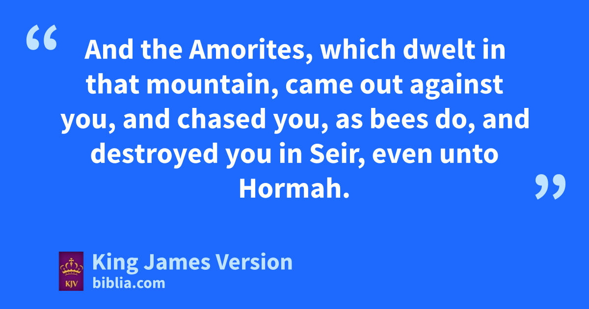 19 *And when we departed from Horeb, xwe went through all that great and terrible wilderness, which ye saw by the way of the mountain of the Amorites, as the Lord our God commanded us; and ywe came to Kadesh-barnea. 20 And I said unto you, Ye are come unto the mountain of the Amorites, which the Lord our God doth give unto us. 21 Behold, the Lord thy God hath set the land before thee: go up and possess it, as the Lord God of thy fathers hath said unto thee; fear not, neither zbe discouraged. 22 And ye came near unto me every one of you, and said, We will send men before us, and they shall search us out the land, and bring us word again by what way we must go up, and into what cities we shall come. 23 And the saying pleased me well: and aI took twelve men of you, one of a tribe: 24 And bthey turned and went up into the mountain, and came unto cthe valley of Eshcol, and searched it out. 25 And they took of the fruit of the land in their hands, and brought it down unto us, and brought us word again, and said, It is a good land which the Lord our God doth give us. 26 Notwithstanding ye would not go up, but drebelled against the commandment of the Lord your God: 27 And eye murmured in your tents, and said, Because the Lord fhated us, he hath brought us forth out of the land of Egypt, to deliver us into the hand of the Amorites, to destroy us. 28 Whither shall we go up? gour brethren have †discouraged our heart, saying, hThe people is greater and taller than we; the cities are great and walled up to heaven; and moreover we have seen the sons of the iAnakims there. 29 Then I said unto you, Dread not, neither be afraid of them. 30 The Lord your God which goeth before you, jhe shall fight for you, according to all that he did for you in Egypt before your eyes; 31 And in the wilderness, where thou hast seen how that the Lord thy God kbare thee, as a man doth bear his son, in all the way that ye went, until ye came into this place. 32 Yet in this thing lye did not believe the Lord your God, 33 mWho went in the way before you, nto search you out a place to pitch your tents in, in fire by night, to shew you by what way ye should go, and in a cloud by day. 34 And the Lord heard the voice of your words, and was wroth, oand sware, saying, 35 pSurely there shall not one of these men of this evil generation see that good land, which I sware to give unto your fathers, 36 qSave Caleb the son of Jephunneh; he shall see it, and to him will I give the land that he hath trodden upon, and to his children, because he hath †wholly followed the Lord. 37 Also the Lord rwas angry with me for your sakes, saying, Thou also shalt not go in thither. 38 But sJoshua the son of Nun, twhich standeth before thee, he shall go in thither: uencourage him: for he shall cause Israel to inherit it. 39 Moreover wyour little ones, which ye said should be a prey, and your children, which in that day xhad no knowledge between good and evil, they shall go in thither, and unto them will I give it, and they shall possess it. 40 But as for you, yturn you, and take your journey into the wilderness by the way of the Red sea. 41 Then ye answered and said unto me, zWe have sinned against the Lord, we will go up and fight, according to all that the Lord our God commanded us. And when ye had girded on every man his weapons of war, ye were ready to go up into the hill. 42 And the Lord said unto me, Say unto them, aGo not up, neither fight; for I am not among you; lest ye be smitten before your enemies. 43 So I spake unto you; and ye would not hear, but brebelled against the commandment of the Lord, and †went presumptuously up into the hill. 44 And cthe Amorites, which dwelt in that mountain, came out against you, and chased you, das bees do, and destroyed you in Seir, even unto Hormah. 45 And ye returned and wept before the Lord; but the Lord would not hearken to your voice, nor give ear unto you. 46 So eye abode in Kadesh many days, according unto the days that ye abode there.