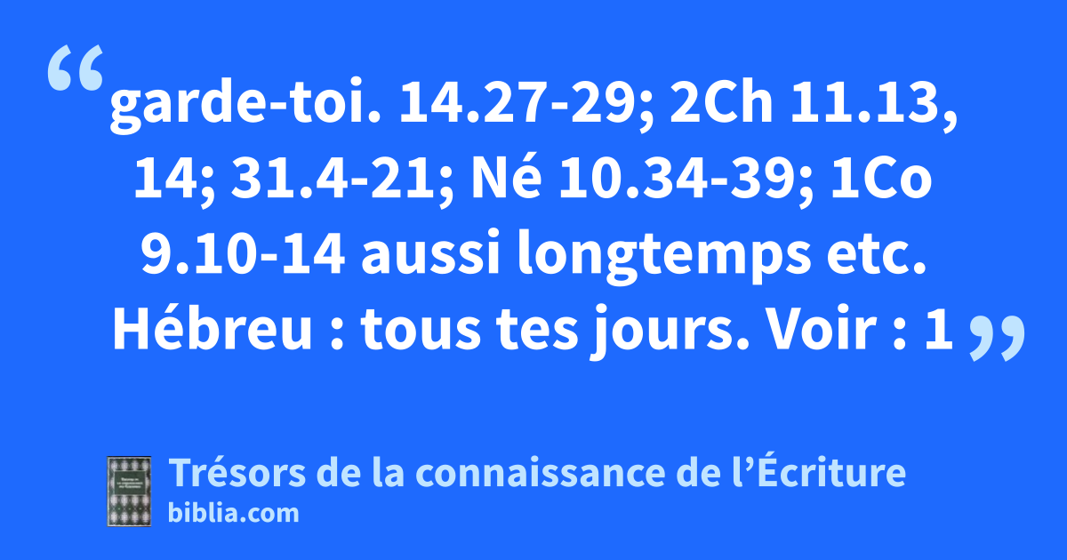 garde-toi. 14.27-29; 2Ch 11.13, 14; 31.4-21; Né 10.34-39; 1Co 9.10-14 aussi longtemps etc. Hébreu : tous tes jours. Voir : 1
