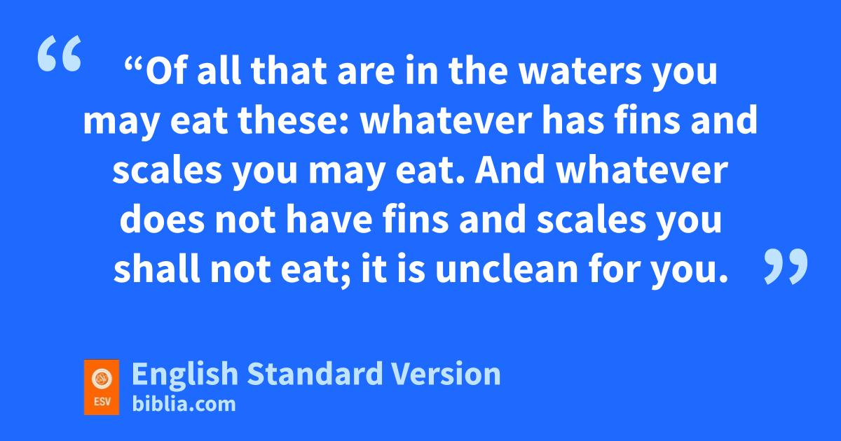 9 “Of all that are in the waters you may eat these: whatever has fins and scales you may eat. 10 And whatever does not have fins and scales you shall not eat; it is unclean for you.