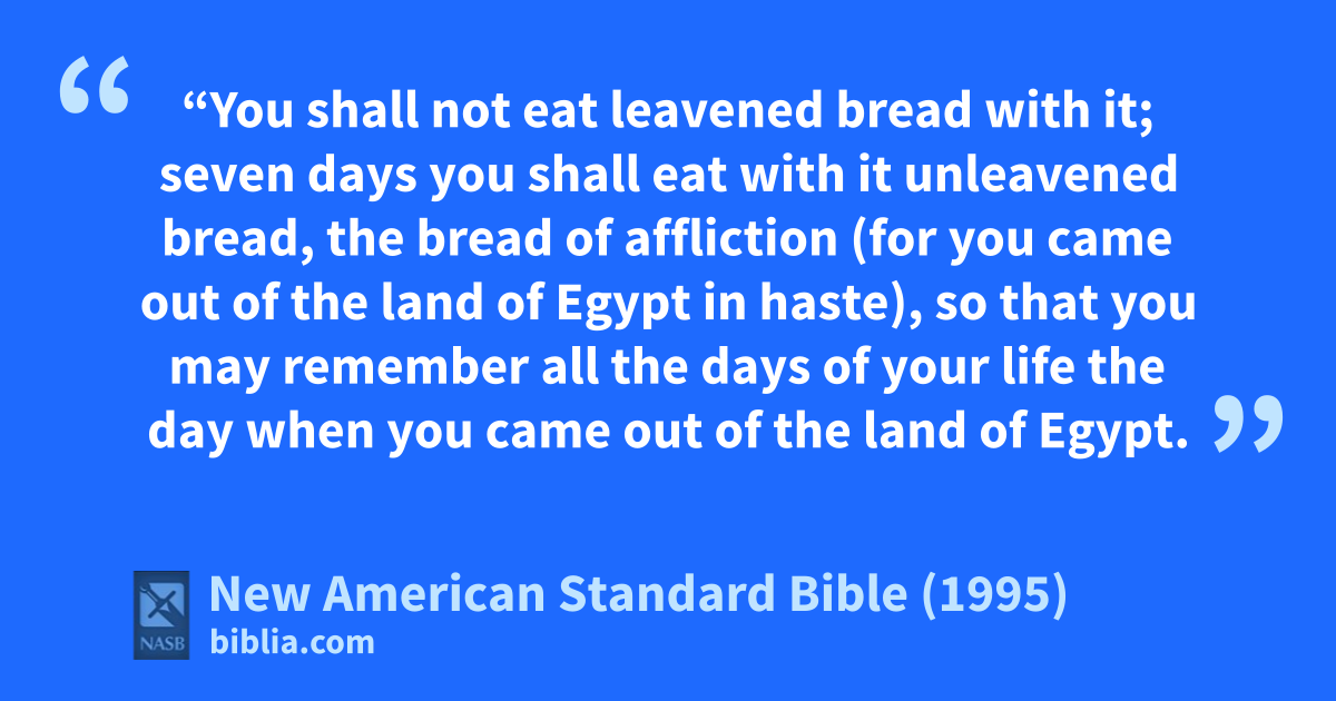3 “aYou shall not eat leavened bread with it; seven days you shall eat with it unleavened bread, the bread of affliction (for you came out of the land of Egypt in haste), so that you may remember ball the days of your life the day when you came out of the land of Egypt.