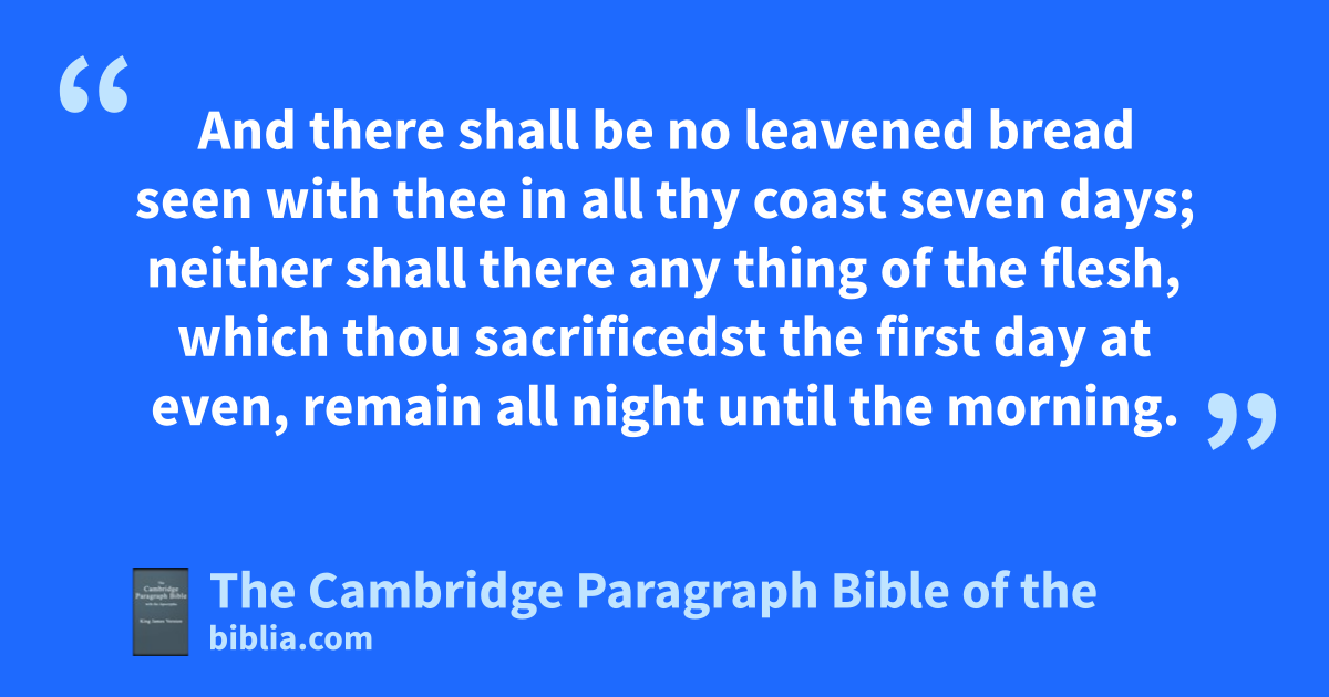 XVI. Observe the amonth of Abib, and keep the passover unto the Lord thy God: for bin the month of Abib the Lord thy God brought thee forth out of Egypt by night. 2 Thou shalt therefore sacrifice the passover unto the Lord thy God, of the flock and cthe herd, din the place which the Lord shall choose to place his name there. 3 Thou shalt eat no leavened bread with it; seven days shalt thou eat unleavened bread therewith, even the bread of affliction; for thou camest forth out of the land of Egypt in ehaste: that thou mayest remember the day when thou camest forth out of the land of Egypt all the days of thy life. 4 fAnd there shall be no leavened bread seen with thee in all thy coast seven days; neither shall there any thing of the flesh, which thou sacrificedst the first day at even, gremain all night until the morning. 5 Thou mayest not * sacrifice the passover within any of thy gates, which the Lord thy God giveth thee: 6 but at the place which the Lord thy God shall choose to place his name in, there thou shalt sacrifice the passover hat even, at the going down of the sun, at the season that thou camest forth out of Egypt. 7 And thou shalt iroast and eat it in the place which the Lord thy God shall choose: and thou shalt turn in the morning, and go unto thy tents. 8 kSix days thou shalt eat unleavened bread: and lon the seventh day shall be a * solemn assembly to the Lord thy God: thou shalt do no work therein.