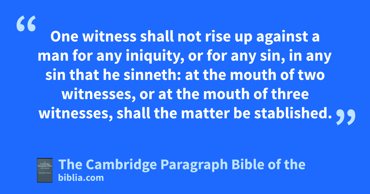 14 kThou shalt not remove thy neighbour’s landmark, which they of old time have set in thine inheritance, which thou shalt inherit in the land that the Lord thy God giveth thee to possess it. 15 One witness shall not rise up against a man for any iniquity, or for any sin, in any sin that he sinneth: lat the mouth of two witnesses, or at the mouth of three witnesses, shall the matter be stablished. 16 If ma false witness rise up against any man to testify against him * that which is wrong; 17 then both the men, between whom the controversy is, shall stand before the Lord, nbefore the priests and the judges, which shall be in those days; 18 and the judges shall make odiligent inquisition: and behold, if the witness be a false witness, and hath testified falsely against his brother; 19 pthen shall ye do unto him, as he had thought to have done unto his brother: so qshalt thou put the evil away from among you. 20 And those which remain rshall hear, and fear, and shall henceforth commit no more any such evil among you. 21 sAnd thine eye shall not pity; but tlife shall go for life, eye for eye, tooth for tooth, hand for hand, foot for foot.