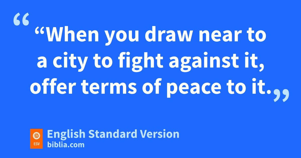 10 “When you draw near to a city to fight against it, poffer terms of peace to it. 11 And if it responds to you peaceably and it opens to you, then all the people who are found in it shall do forced labor for you and shall serve you. 12 But if it makes no peace with you, but makes war against you, then you shall besiege it. 13 And when the Lord your God gives it into your hand, qyou shall put all its males to the sword, 14 rbut the women and the little ones, the livestock, and everything else in the city, all its spoil, you sshall take as plunder for yourselves. And tyou shall enjoy the spoil of your enemies, which the Lord your God has given you. 15 Thus you shall do to all the cities that are very far from you, which are not cities of the nations here. 16 But uin the cities of these peoples that the Lord your God is giving you for an inheritance, you shall save alive nothing that breathes, 17 but vyou shall devote them to complete destruction,1 the Hittites and the Amorites, the Canaanites and the Perizzites, the Hivites and the Jebusites, as the Lord your God has commanded, 18 that wthey may not teach you to do according to all their abominable practices that they have done for their gods, and so you xsin against the Lord your God.