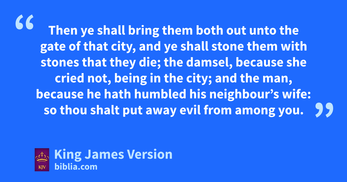 22 mIf a man be found lying with a woman married to an husband, then they shall both of them die, both the man that lay with the woman, and the woman: lso shalt thou put away evil from Israel. 23 If a damsel that is a virgin be nbetrothed unto an husband, and a man find her in the city, and lie with her; 24 Then ye shall bring them both out unto the gate of that city, and ye shall stone them with stones that they die; the damsel, because she cried not, being in the city; and the man, because he hath ohumbled his neighbour’s wife: pso thou shalt put away evil from among you. 25 But if a man find a betrothed damsel in the field, and the man ||force her, and lie with her: then the man only that lay with her shall die: 26 But unto the damsel thou shalt do nothing; there is in the damsel no sin worthy of death: for as when a man riseth against his neighbour, and slayeth him, even so is this matter: 27 For he found her in the field, and the betrothed damsel cried, and there was none to save her. 28 qIf a man find a damsel that is a virgin, which is not betrothed, and lay hold on her, and lie with her, and they be found; 29 Then the man that lay with her shall give unto the damsel’s father fifty shekels of silver, and she shall be his wife; because he hath rhumbled her, he may not put her away all his days.
