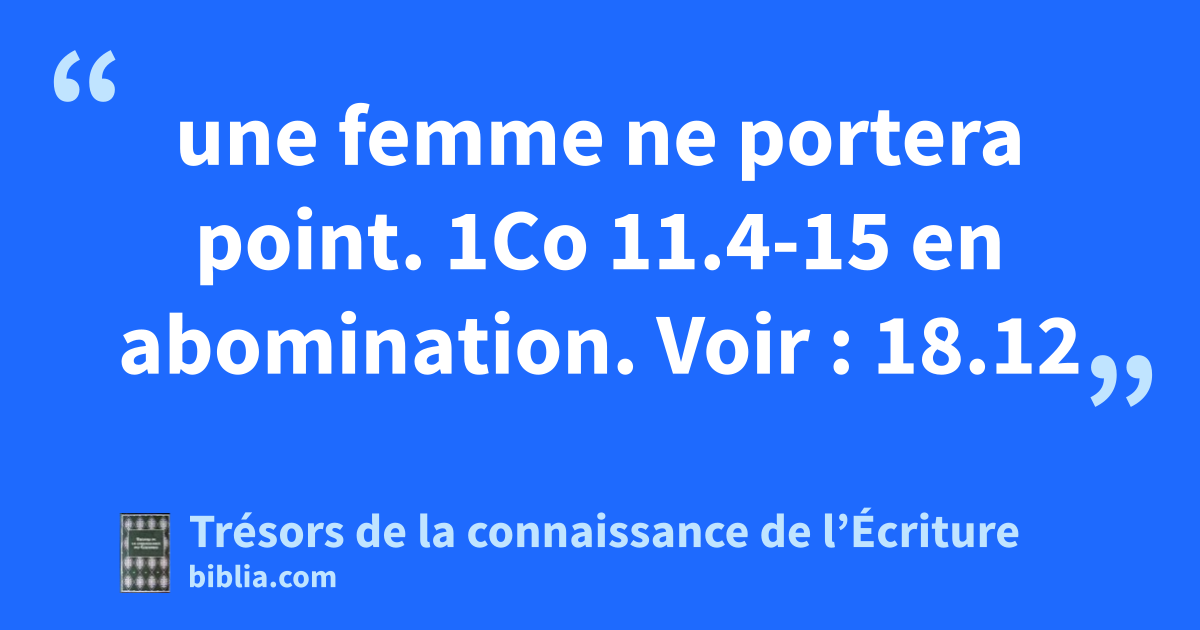 une femme ne portera point. 1Co 11.4-15 en abomination. Voir : 18.12