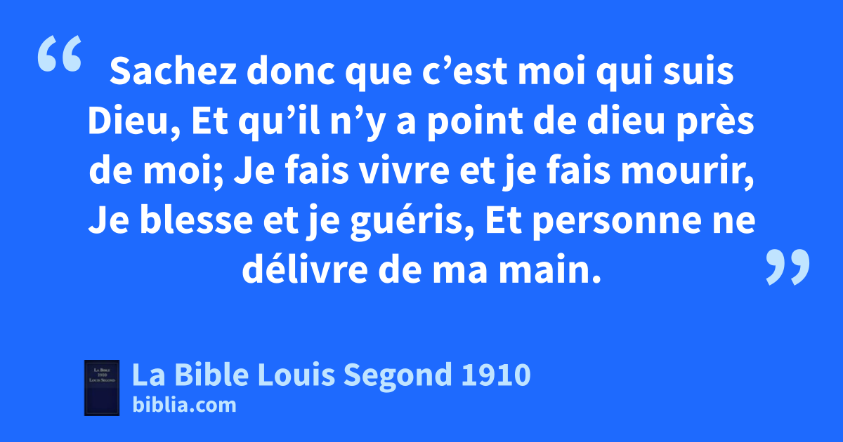44Moïse vint et prononça toutes les paroles de ce cantique en présence du peuple; Josué, fils de Nun, était avec lui. 45Lorsque Moïse eut achevé de prononcer toutes ces paroles devant tout Israël, 46il leur dit: Prenez à coeur toutes les paroles que je vous conjure aujourd’hui de recommander à vos enfants, afin qu’ils observent et mettent en pratique toutes les paroles de cette loi. 47Car ce n’est pas une chose sans importance pour vous; c’est votre vie, et c’est par là que vous prolongerez vos jours dans le pays dont vous aurez la possession, après avoir passé le Jourdain.