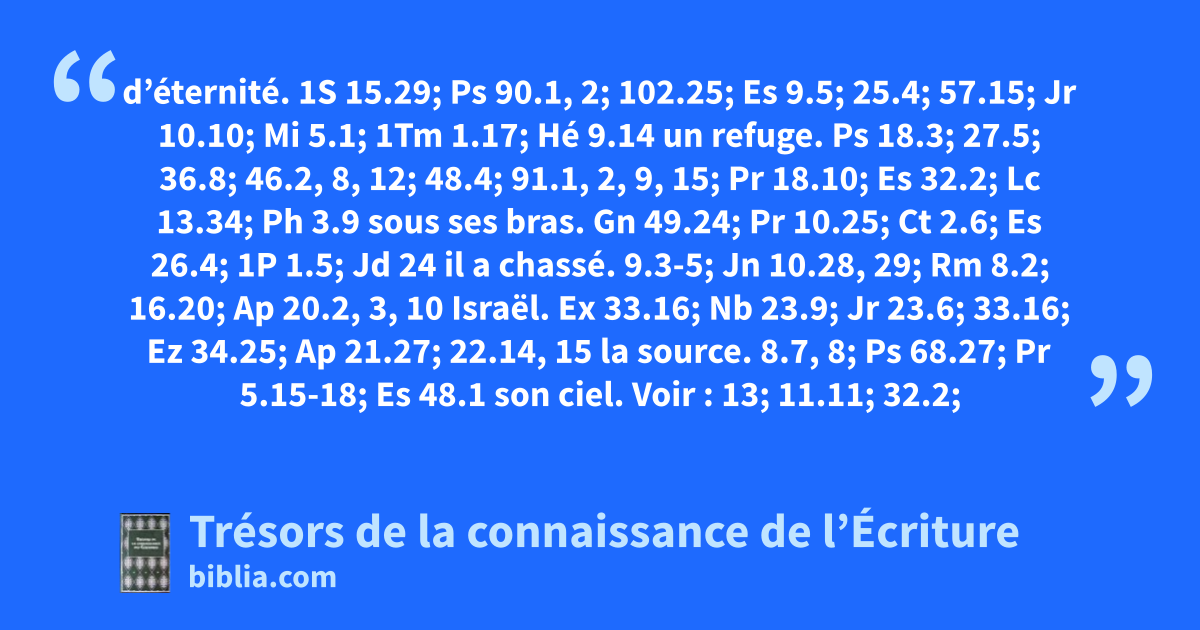 d’éternité. 1S 15.29; Ps 90.1, 2; 102.25; Es 9.5; 25.4; 57.15; Jr 10.10; Mi 5.1; 1Tm 1.17; Hé 9.14 un refuge. Ps 18.3; 27.5; 36.8; 46.2, 8, 12; 48.4; 91.1, 2, 9, 15; Pr 18.10; Es 32.2; Lc 13.34; Ph 3.9 sous ses bras. Gn 49.24; Pr 10.25; Ct 2.6; Es 26.4; 1P 1.5; Jd 24 il a chassé. 9.3-5; Jn 10.28, 29; Rm 8.2; 16.20; Ap 20.2, 3, 10