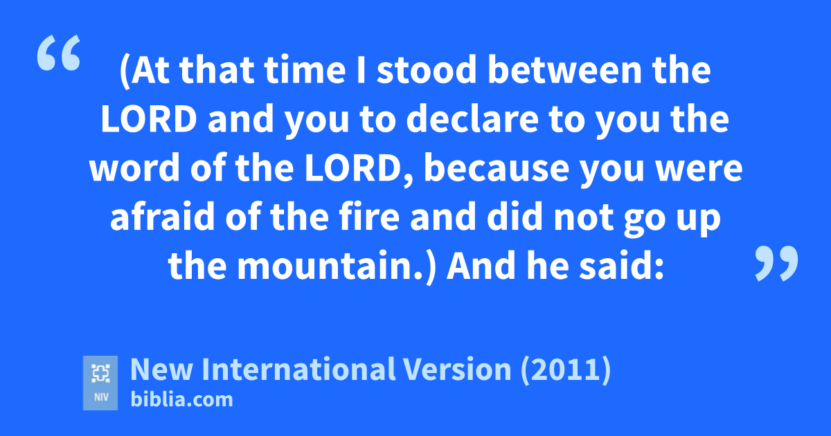 Hear, Israel, the decrees and lawsp I declare in your hearing today. Learn them and be sure to follow them. 2 The Lord our God made a covenantq with us at Horeb.r 3 It was not with our ancestorsa that the Lord made this covenant, but with us,s with all of us who are alive here today.t 4 The Lord spokeu to you face to facev out of the firew on the mountain. 5 (At that time I stood betweenx the Lord and you to declare to you the word of the Lord, because you were afraidy of the fire and did not go up the mountain.) And he said: