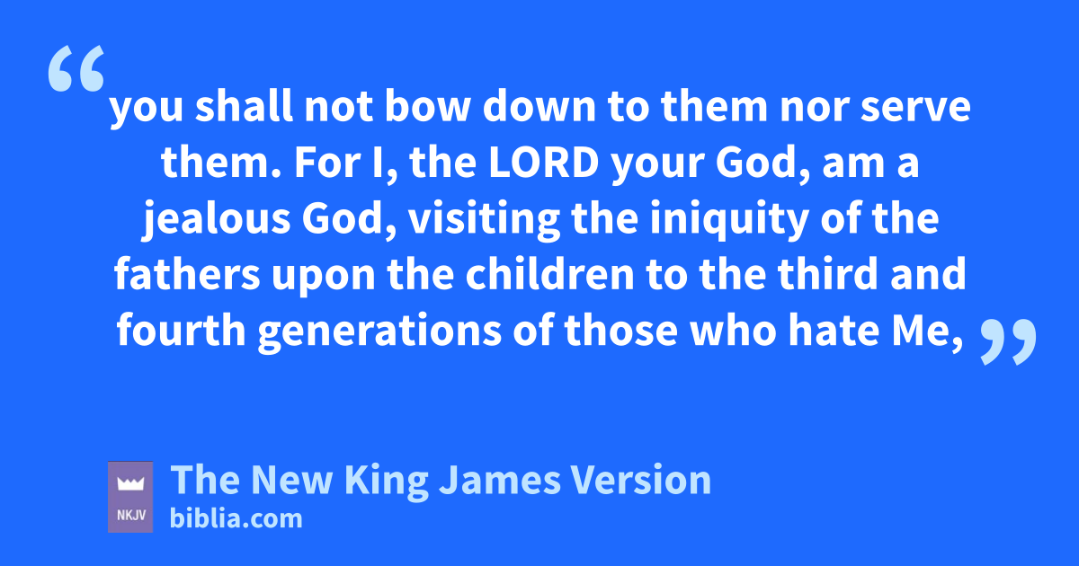 8 h‘You shall not make for yourself a carved image—any likeness of anything that is in heaven above, or that is in the earth beneath, or that is in the water under the earth; 9 you shall not ibow 3down to them nor serve them. For I, the Lord your God, am a jealous God, 4visiting the iniquity of the fathers upon the children to the third and fourth generations of those who hate Me, 10 jbut showing mercy to thousands, to those who love Me and 5keep My commandments.
