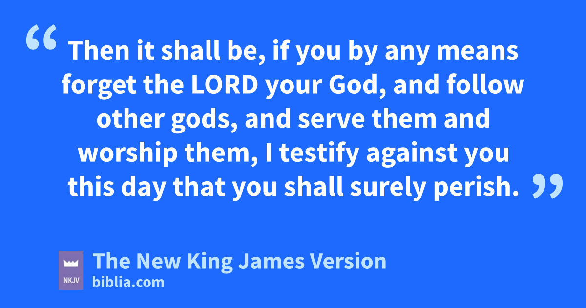 18 “And you shall remember the Lord your God, vfor it is He who gives you power to get wealth, wthat He may 8establish His covenant which He swore to your fathers, as it is this day. 19 Then it shall be, if you by any means forget the Lord your God, and follow other gods, and serve them and worship them, xI testify against you this day that you shall surely perish. 20 As the nations which the Lord destroys before you, yso you shall perish, because you would not be obedient to the voice of the Lord your God.