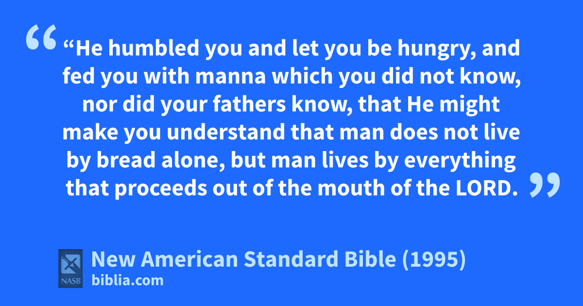 3 “He humbled you and let you be hungry, and fed you with manna which you did not know, nor did your fathers know, that He might make you 1understand that aman does not live by bread alone, but man lives by everything that proceeds out of the mouth of the Lord.