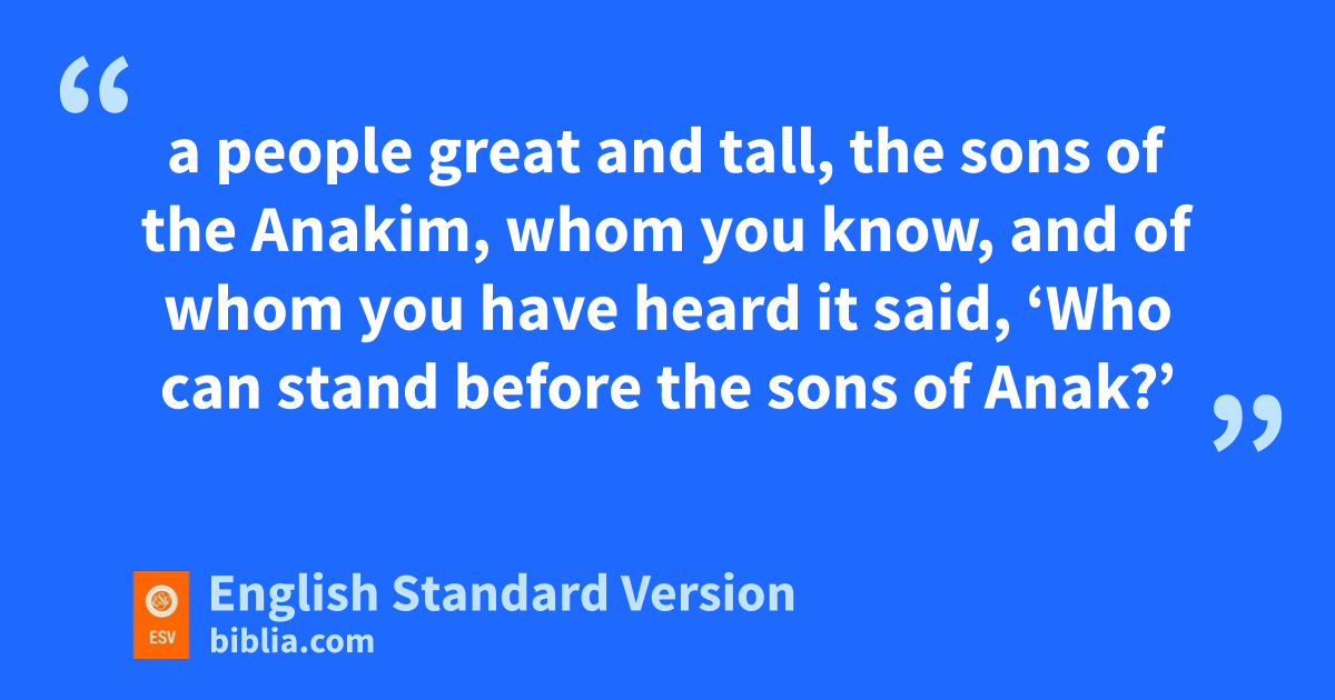 9 “Hear, O Israel: you are vto cross over the Jordan today, to go in to dispossess nations wgreater and mightier than you, cities great and fortified up to heaven, 2 a people great and tall, xthe sons of the Anakim, ywhom you know, and of whom you have heard it said, ‘Who can stand before the sons of Anak?’ 3 Know therefore today that he who zgoes over before you aas a consuming fire is the Lord your God. He will destroy them and subdue them before you. bSo you shall drive them out and make them perish quickly, as the Lord has promised you.