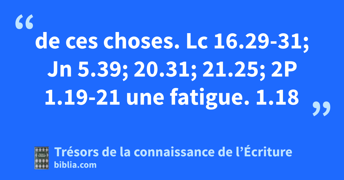 de ces choses. Lc 16.29-31; Jn 5.39; 20.31; 21.25; 2P 1.19-21 une fatigue. 1.18