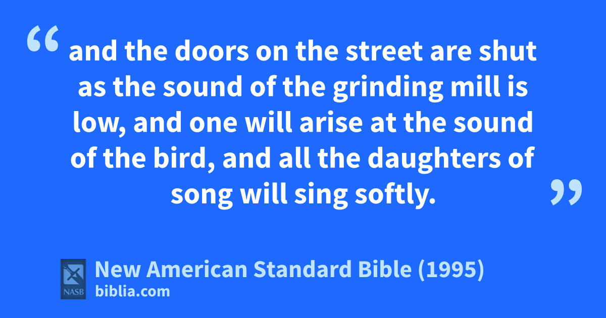 4 and the doors on the street are shut as the asound of the grinding mill is low, and one will arise at the sound of the bird, and all the bdaughters of song will 1sing softly.