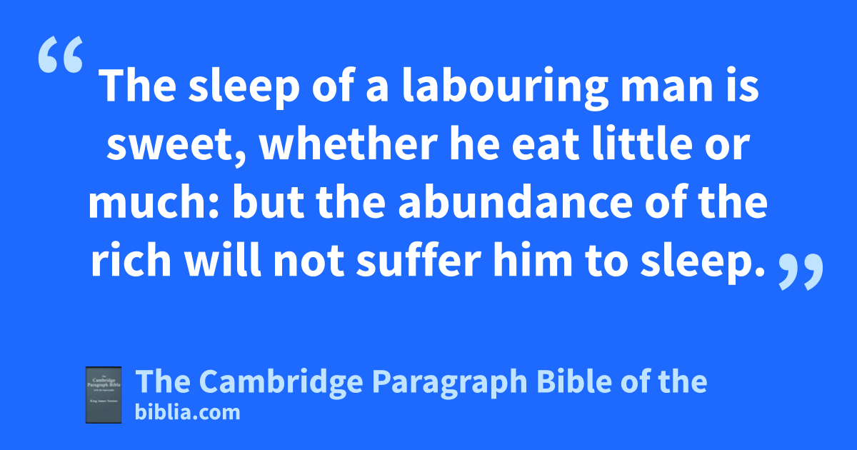 9 Moreover rthe profit of the earth is for all: the king himself is served by the field. 10 He that loveth silver shall not be satisfied with silver; nor he that loveth sabundance with increase: this is also vanity. 11 When goods increase, they are increased that eat them: and what tgood is there to uthe owners thereof, saving the beholding of them with their eyes? 12 The sleep of a labouring man is sweet, whether he eat little or much: but the abundance of the rich will not suffer him to sleep.